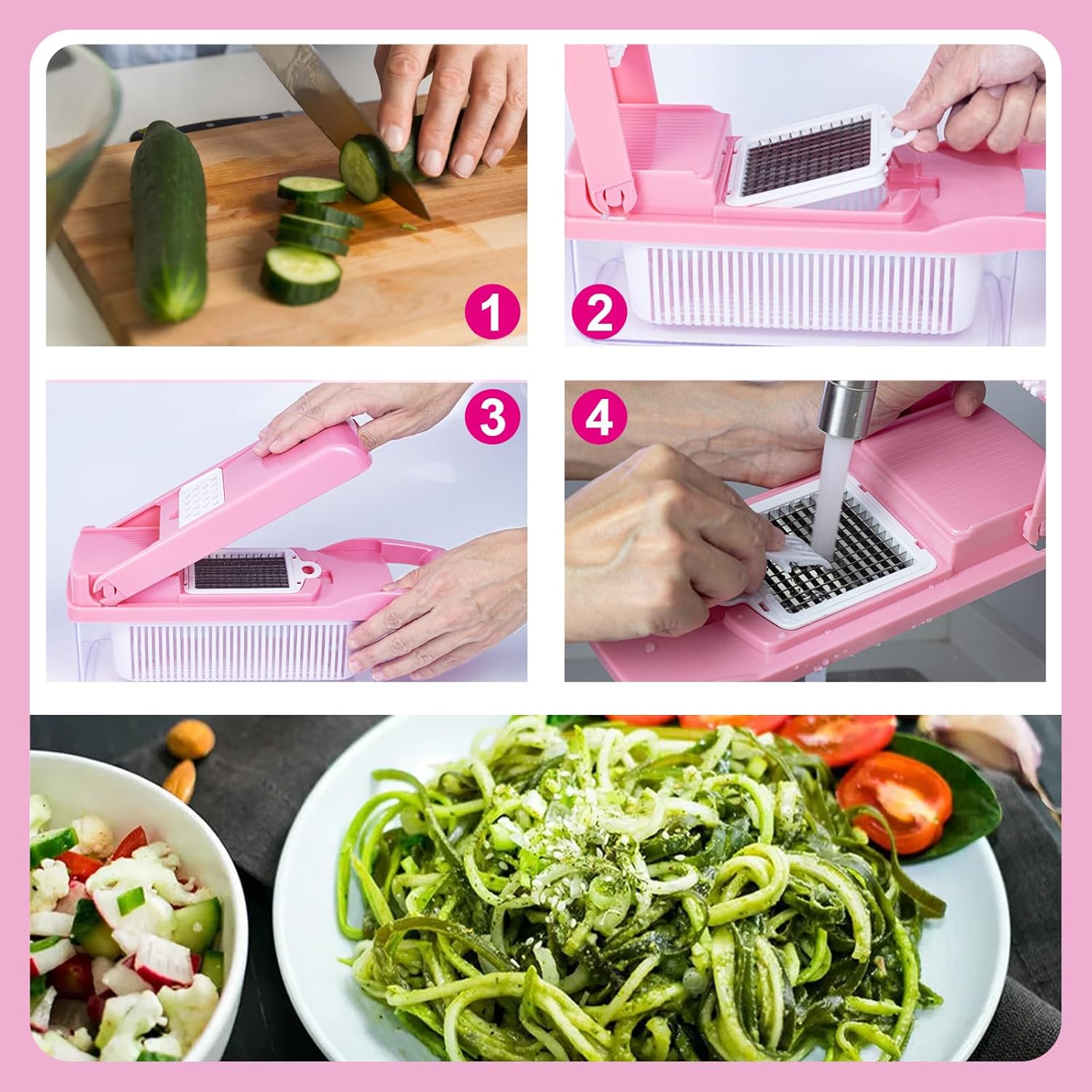 ✅ 𝐏𝐑𝐄𝐂𝐈𝐒𝐈𝐎𝐍 𝐒𝐓𝐀𝐈𝐍𝐋𝐄𝐒𝐒 𝐒𝐓𝐄𝐄𝐋 𝐁𝐋𝐀𝐃𝐄𝐒 – 𝐂𝐎𝐍𝐒𝐈𝐒𝐓𝐄𝐍𝐓 𝐀𝐍𝐃 𝐄𝐕𝐄𝐍 𝐂𝐔𝐓𝐒 Equipped with durable stainless steel blades for uniform chopping and slicing. Easily prepare onions, potatoes, tomatoes, carrots, cucumbers, cabbage, and more.