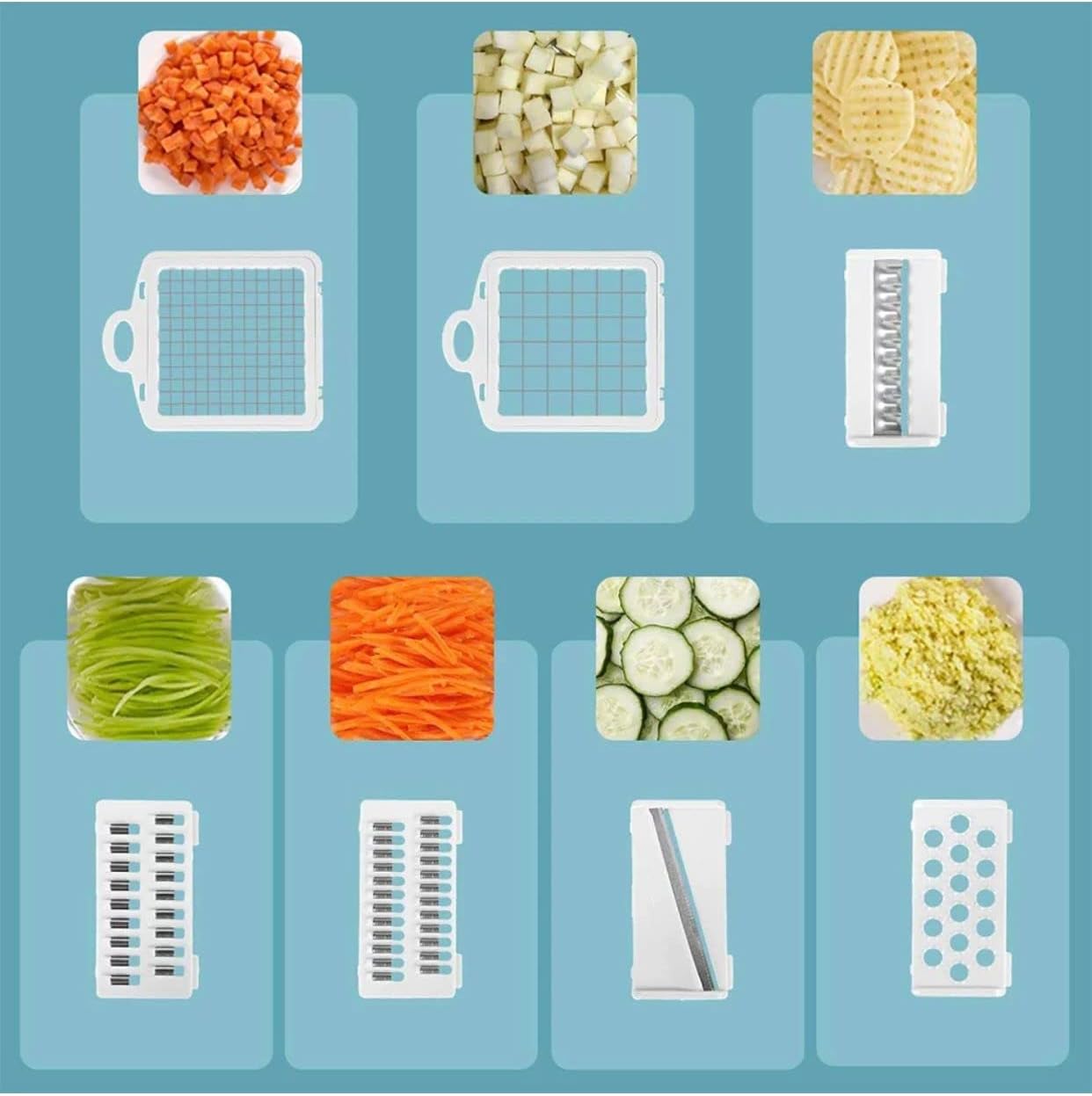 ALL IN ONE TOOL FOR KITCHEN. This product is a perfect tool for the kitchen. It has 13 in 1 quality. It can ease your work in the kitchen BONUS HANDHELD PEELER, JUICER, EGG SEPARATOR, AND SLICER Juice your fresh lemons, separate your yolks from your egg whites and slice your hard-boiled eggs with ease with these all-in-one food choppers and dicers. Plus this set comes with a Bonus peeler that can both peel and julienne your vegetables. EASY TO USE. This product is easy to use. There is no need of other artificial force or any kind of energy. People of all ages can easily use it. BEST FUNCTIONALITY ON THE MARKET Everything you need in this multifunctional all-in-one kitchen gadget. It is very easy to change inserts including two different sized chopper blades and two spiralizer inserts give you the option of broad ribbons or thin spirals. ENVIRONMENT FRIENDLY. In this age of climate change, this product is completely environmentally friendly. No omission of any hazardous substance to the environment. PRACTICAL AND CONVENIENT – The onion slicer chopper set can easily and consistently chop a wide variety of veggies & fruits e.g. onion, mushroom, cucumber, carrot, potato, tomato, ginger, garlic, cheese & more. No tears chopper and saves you more time on housework. If you have any problems or suggestions, please feel free to contact us, we will try our best to serve you. EASY TO CLEAN This product is so simple that does not need any extra care to remove dirtiness. After its use its so easy to clean it.