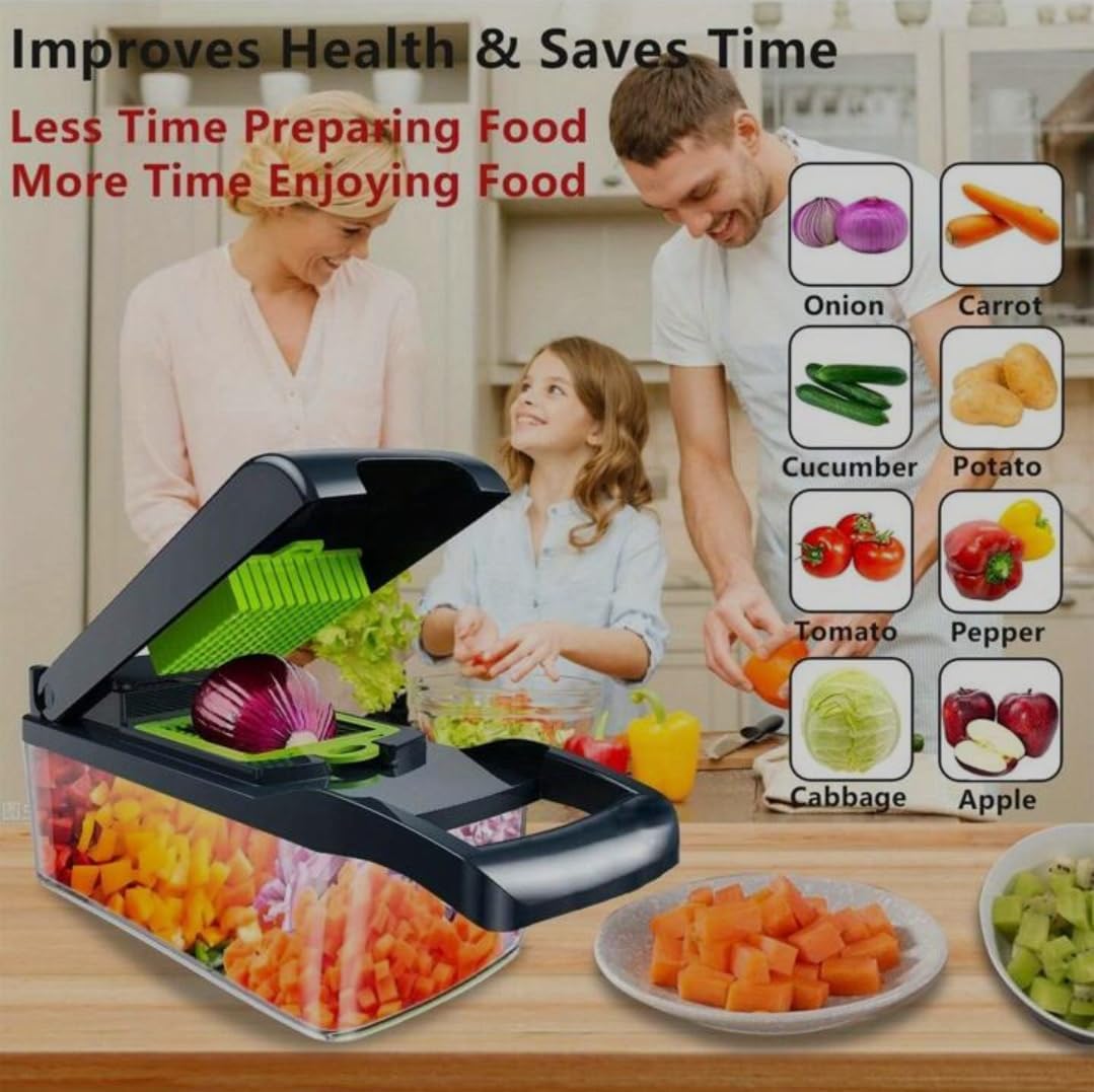 Revolutionize your kitchen with our 16-in-1 Vegetable Chopper – the ultimate culinary companion for efficiency and versatility. This multifunctional marvel streamlines meal prep with precision and speed. From slicing and dicing to julienning and grating, this all-in-one tool does it all. The high-quality stainless steel blades effortlessly handle a variety of ingredients, while the interchangeable inserts cater to your culinary creativity. Its compact design ensures easy storage, and the non-slip base guarantees stability during use. Upgrade your kitchen arsenal and embrace a new era of convenience with the 16-in-1 Vegetable Chopper – where versatility meets simplicity.