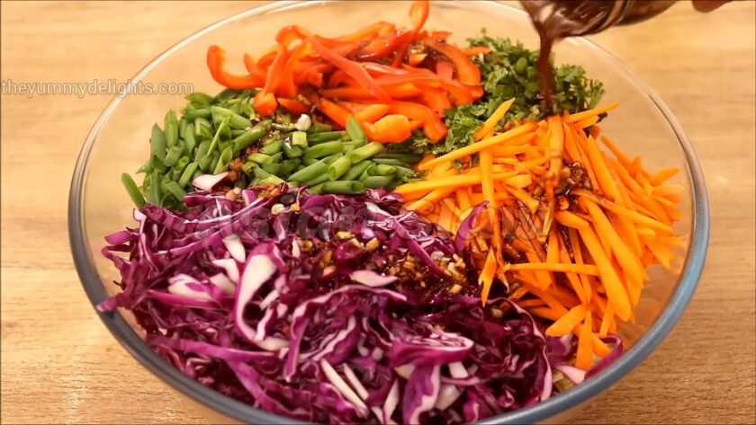 Asian Slaw is a simple and easy Asian cabbage salad made with shredded Chinese cabbage, purple cabbage, vegetables (bell …