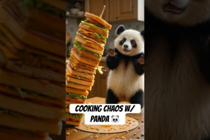 From rainbow pasta explosions to sandwich towers gone wrong, this panda has big chef energy… and even bigger kitchen … source