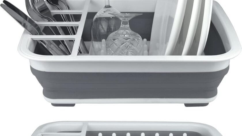 Collapsible and portable: the dish rack is designed to save space. It is collapsible and folds flat for easy storage when not in use or during travel.