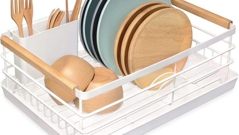 Save Space: The dish rack offers wide space for drying dishes, bowls, glassware and other kitchen utensil, without taking up too much space on your countertop. Size: 16.5″L x 11.8″W x 5.9″H.
