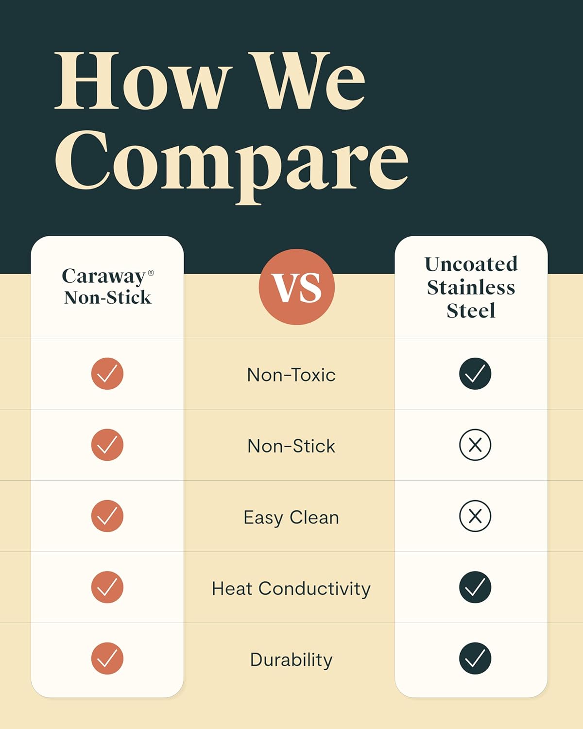 NON-TOXIC MATERIALS: All Caraway products are free of PTFE, PFOA, PFAS, lead, cadmium and other toxic materials that can leach into your food, making them safe for you, your family, and the environment.
