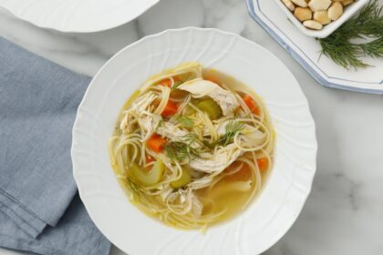 This hearty chicken noodle soup is delicious, good for you, and a cinch to whip up on a busy night. It’s made with a store-bought …