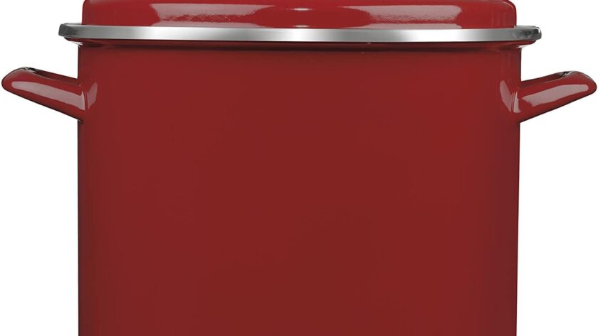 The Cuisinart Chef’s Classic Enamel on Steel stockpot is heavy-duty, multi functional and generous in size. Features: Superior Heat Distribution – Enameled on steel heats up quickly and enables even heat distribution|Steady Handling – Wide side handles make for a secure and comfortable grip|Enameled Covers – Tightfitting lids seal in flavor. Elegant stainless steel knob for easy handling|Ultimate Cooking Versatility – Use on the stovetop or in the oven.