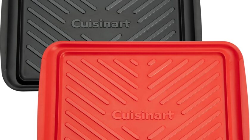 Cuisinart Grilling Prep & Serve Trays, 17×10.5 inch BBQ Tray Safe for Food Handling, 2 Dishwasher Safe Nesting Trays Black & Red, Perfect Grilling Accessories for Cooked & Raw Meat, Fits 6 Burgers
