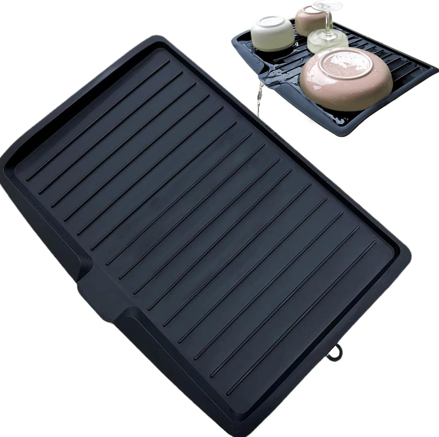 Minimalist and Easy Storage: The dish drain board features a simple, color and versatile design that matches any kitchen decor. It also comes with a hanging storage hole for easy storage and space-saving.