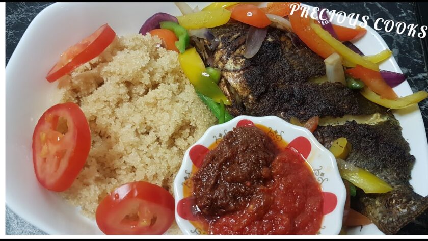 Home Tilapia Dishes Easy Attieke and Grilled Tilapia Recipe// Akyeke// gluten free cassava Couscous and Tilapia