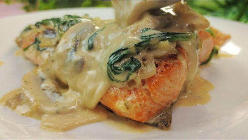 Easy pan seared salmon recipe with creamy spinach & mushroom sauce ! This easy salmon recipe is incredibly tasty and quick to …