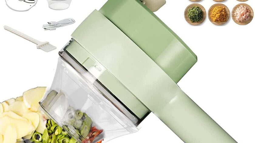 Kitchen Goods Electric Vegetable Cutter Set – 4 in 1 Portable, Rechargeable, Wireless Food Processor & Chopper Machine for Pepper, Garlic, Onion, Celery & Meat