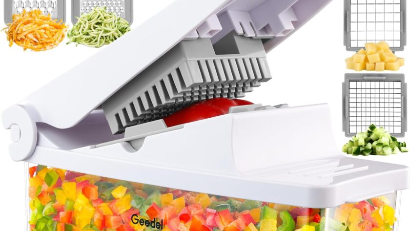Geedel food chopper dicer is made of baby food grade material, the blades are made of surgical grade 420 stainless steel, which are enough sharp to cut ingredients. All parts of the chopper without BPA, which is safe to use.