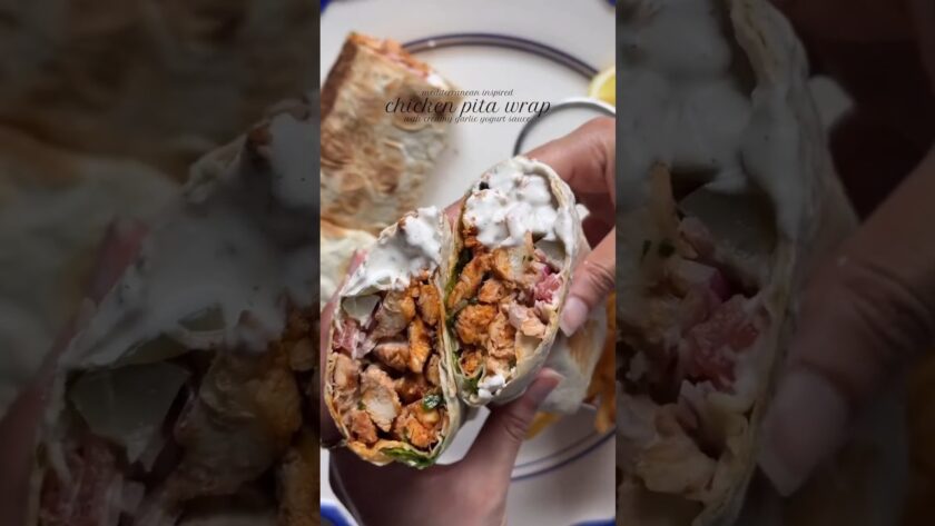 Irresistible Mediterranean Chicken Wrap with Creamy Garlic Yogurt Sauce! #food#shorts#cookingtime