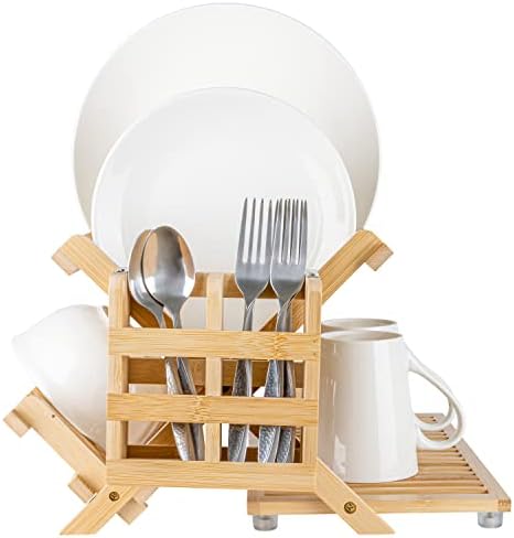 IDEAL DISH RACK: The Joey’z bamboo dish drying rack is the ultimate solution for any kitchen, boasting a distinctive yet understated design that perfectly complements any countertop. This foldable dish drying rack is both eco-friendly and practical, able to be stowed away with ease when not in use. With its three tiers and dedicated utensil holder, every item, from plates and bowls to mugs, cups, and cutlery, is allotted ample space for efficient and thorough drying.