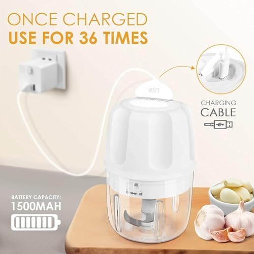 [𝟓𝟎 𝑻𝑰𝑴𝑬𝑺 𝑼𝑺𝑨𝑮𝑬 𝑪𝑶𝑹𝑫𝑳𝑬𝑺𝑺 𝑭𝑶𝑶𝑫 𝑪𝑯𝑶𝑷𝑷𝑬𝑹] The rechargeable electric vegetable chopper supports USB charging, and the handheld cordless garlic mincer can be used about 50 times after fully charged for 2 hours. The stylish and portable design of this mini food processor is very suitable for family dinners, camping, travelling, or other outdoor activities.