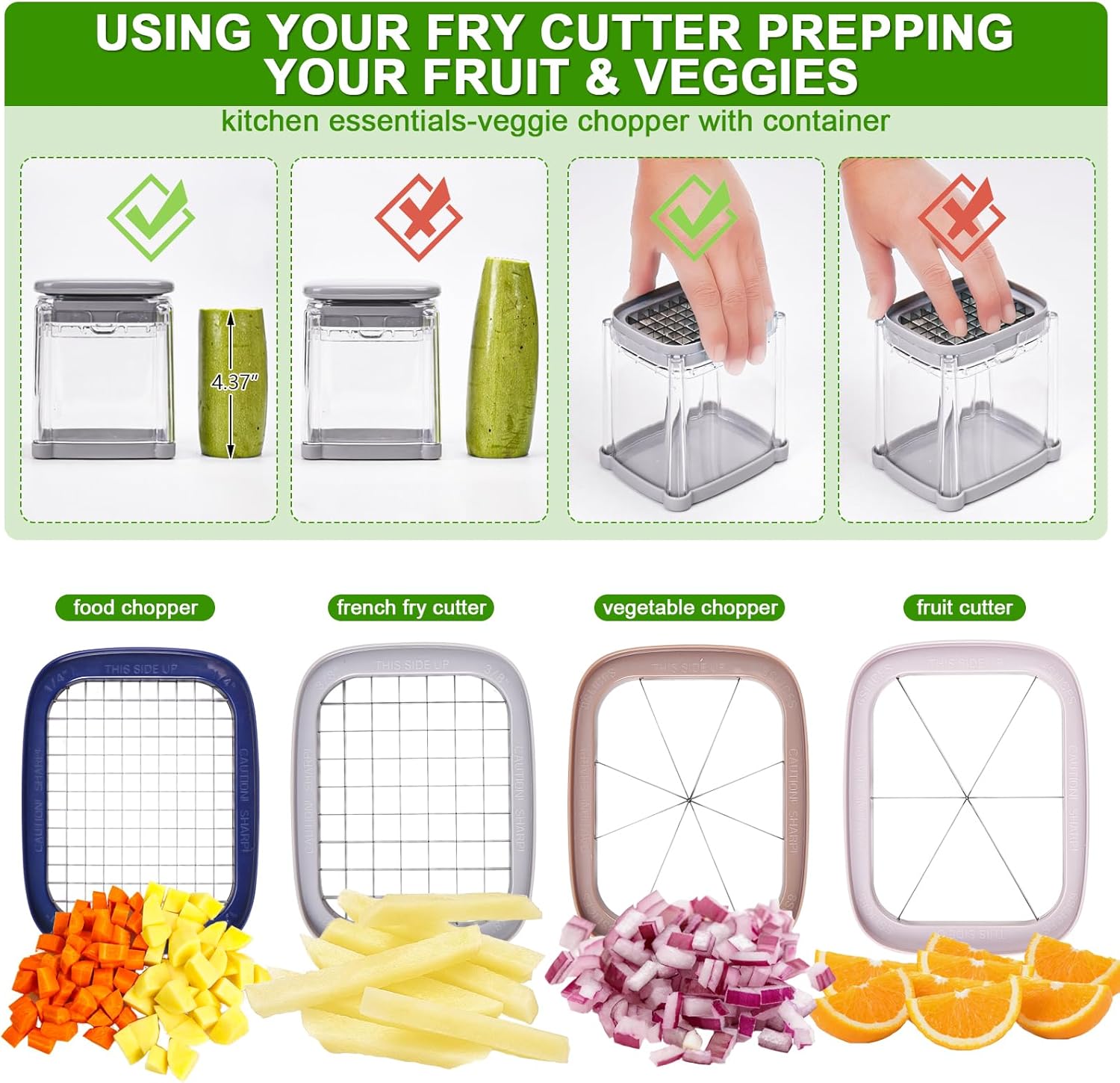 Kitchen gadgets food chopper with container.4 in 1 chopper vegetable cutter with french fry cutter,veggie chopper,fruit slicer,potato cutter.new home gift ideas-mandoline slicer for food chopper