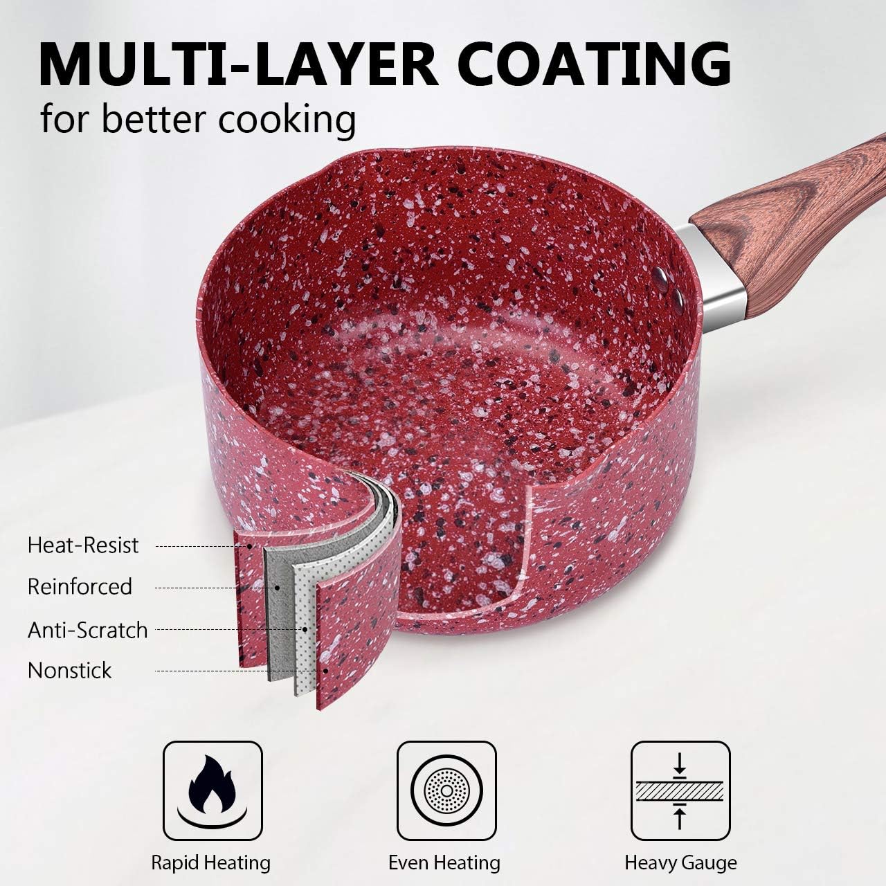 [Heat Up Quickly & Evenly] – This 3-quart small pot with lid is made of professional-grade material that conducts heat quickly and evenly and has no hot spot. No chipping, no peeling, or flaking. Regardless of whether it is cooking sauce or soup, the rounded bottom design makes the heat evenly distributed, keeping the food delicious to the greatest extent. When you are hungry, this saucepan will be the best helper for you.