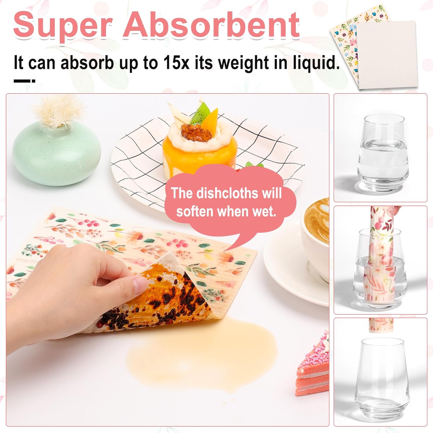 [Absorb & Dry Quickly] Made of 70% cellulose and 30% cotton, 100% biodegradable compostable like paper towel, but washable reusable like sponge, the Swedish cloths can pick up a lot of liquid (absorbing up to 15 times its own dry weight) without leaking and make cleaning much easier, more sustainable than going through several rolls of paper towels. When put towels in the dryer, pull out the Swedish dishcloths, and lay flat to dry after each use, it will be reusable times through the well care.
