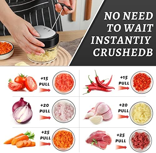 Portyable Hand Pull String Vegetable Chopper for Garlic, Onion, Ginger, Meat, Herbs, Chili, Dishwasher Safe
