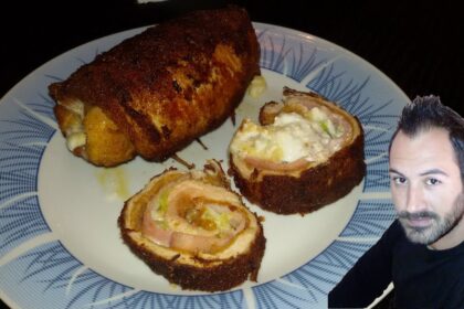 Pork stuffed schnitzel (Greek escalop) with bacon, gouda, green peppers and Greek creamy white cheese Every week new … source