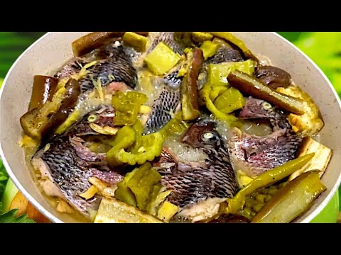 melissamigrino #filipinorecipe #pinoyfood Ingredients: tilapia talong ampalaya 1 cup vinigar 1/2 cup water 2 thumbs ginger green …