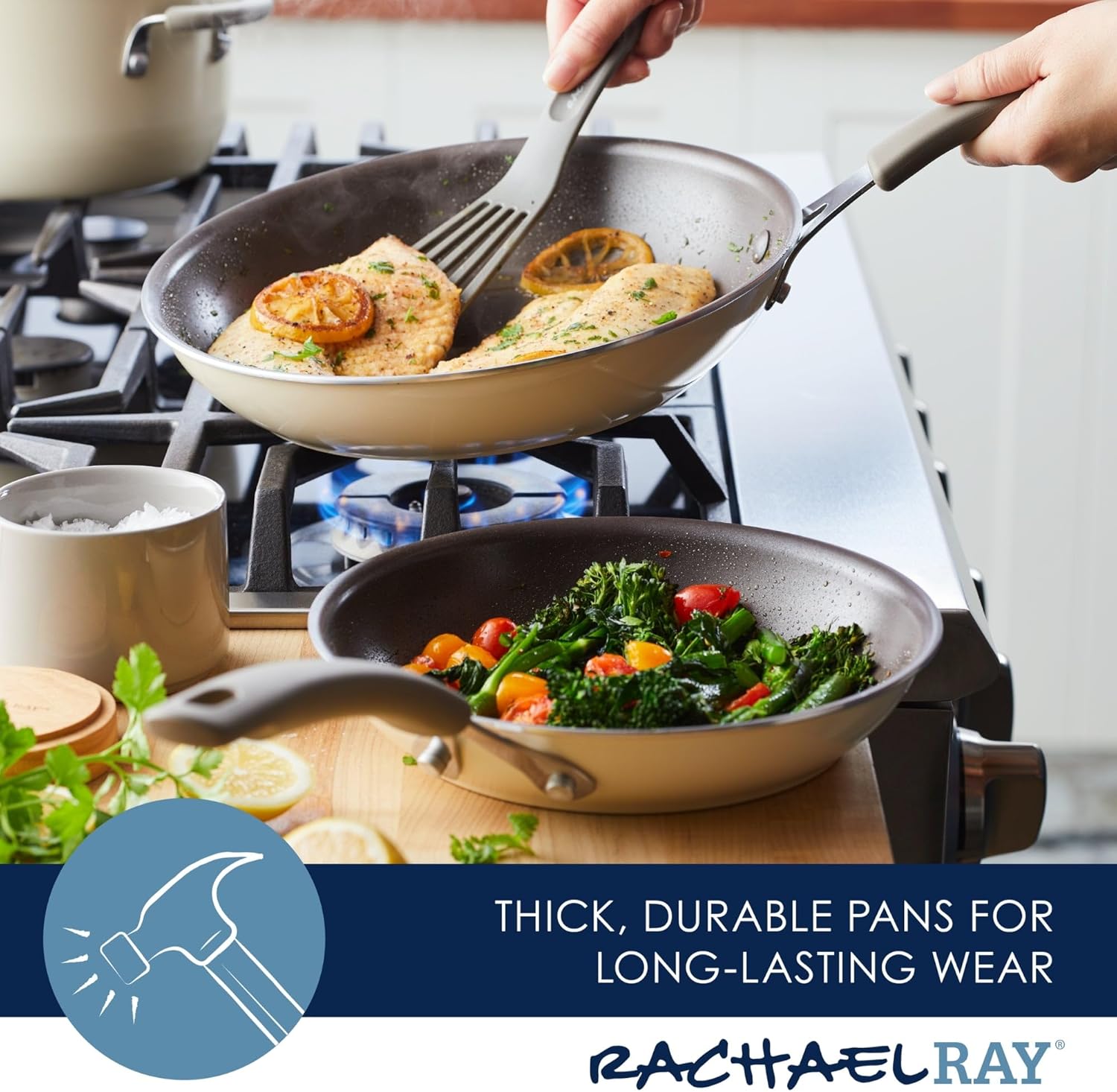 – Oven Safe Up To 400F – Dual Riveted Silicone Handle – Not Dishwasher Safe – Sturdy And Reliable
