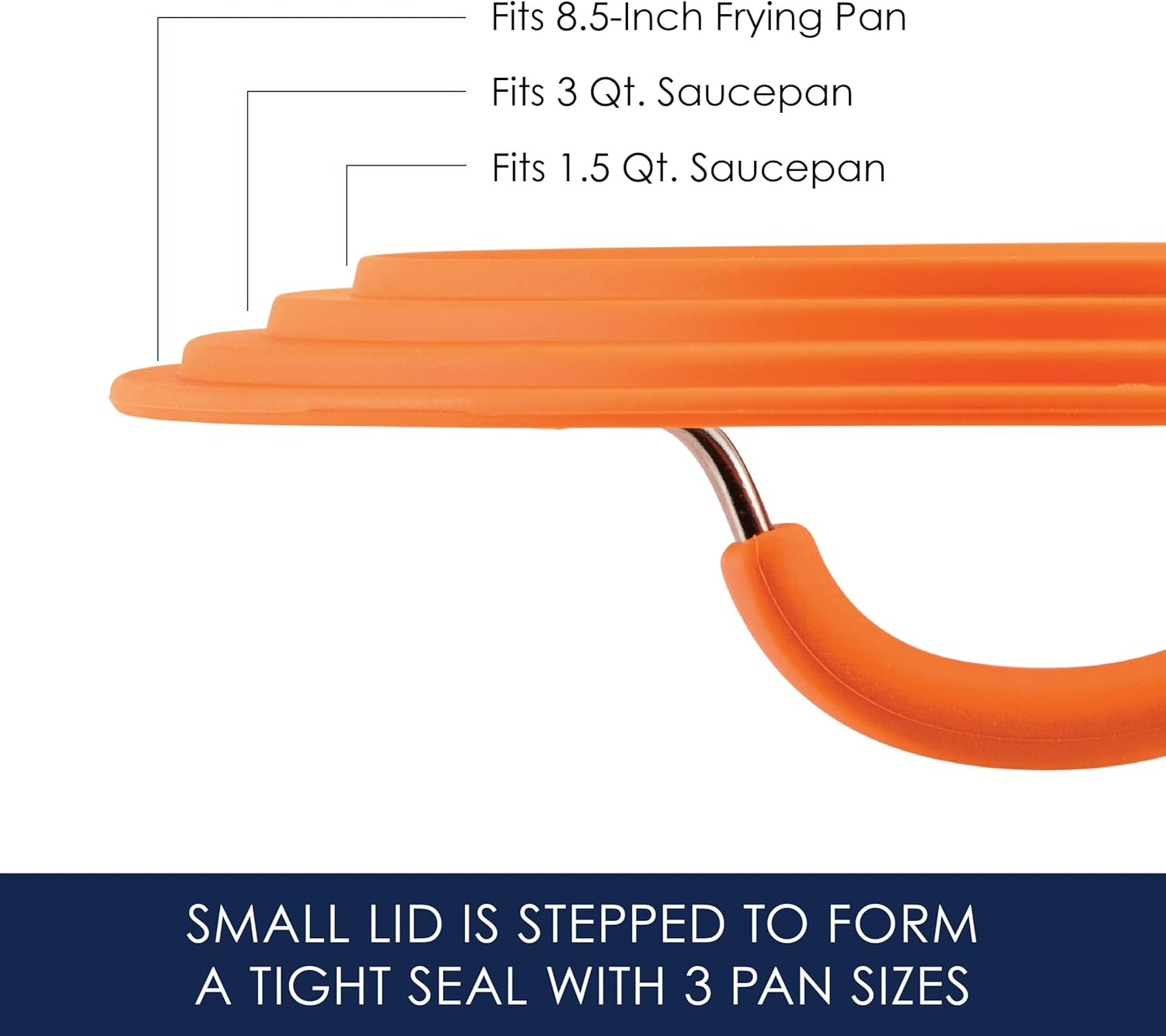 PUT A LID ON IT: Universal space-saving lids are made from tempered glass with vent and silicone rim. One lid features an innovative stepped edge, so you can cover the whole set with just two lids (plus others in collection). Less lids means less clutter