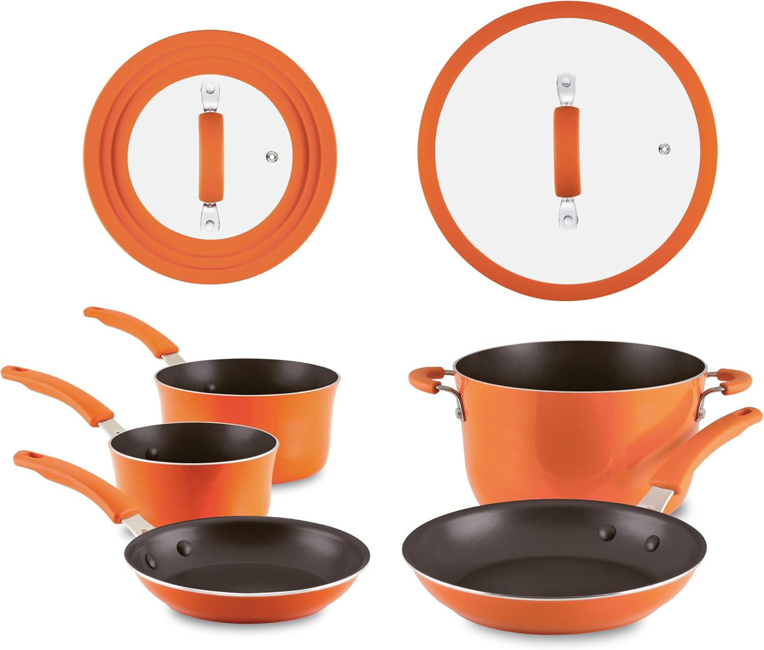 It’s time to step up your cooking game! This Rachael Ray Cook + Create 11-Piece Nonstick Cookware Set is not just super practical – it also brings a touch of luxe to your cooking experience, with loads of smart and convenient features – like space-saving universal lids, nonstick rivets, and improved nonstick. Both lids are made from tempered glass with silicone rims and one of them features an innovative stepped edge, so you can cover the whole set with just two lids, locking in heat and flavor and saving precious cabinet space. The dual rivets attaching the handles are nonstick coated for smooth stirring and easy cleaning. And the new premium triple-layer nonstick gives you the ultimate food release, scratch resistance, and durability. Plus, you’ll love the comfy silicone-grip handles! The cookware is made with thick-gauge aluminum for a sturdy feel, reliable stovetop performance, and quick, even heating. Oh yeah, and they’re oven safe to 400 degrees F. Cook + Create was designed to maximize cooking surfaces and capacity for the ultimate in cooking efficiency, while the collection’s fun color options make it easy to complement any home decor, so these contemporary designs will always be in style. If you’re ready to get fun and functional in the kitchen, you’re ready to Cook + Create!