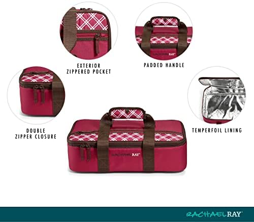 Rachael Ray Lasagna Lugger, Reusable Insulated Casserole Carrier Keeps Food Hot or Cold for Hours, Perfect for Lasagna Pan, Casserole Dish, Baking Dish & More, Burgundy