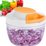 【Dishwasher Safe】 – Easy to Clean and Store – This food chopper is a detachable design, the body of the chopper can be eaisly removed for cleaning by pushing the snap. Just rinse this chopper under the tap after chopping, use the included brush to better clean the crevices on the chopper. It is dishwasher safe. This food cutter can folds compactly so it is very easy stored, occupying very little space