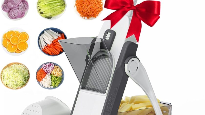 【Easy to Use】 – Save Your Time – New Veggie chopper with adjustable thickness, simply adjust the dial and knobs on the back of the slicer, You can easily switch the mandoline into chopper, slicer, cutter and dicer. Then pumb the handle with a bit of effort. And you can easily make pre-processed vegetable like: carrot julienne, cucumber slices, french fry, tomato dices, etc in no time. There are more than 30 other chopping modes to explore with this efficient kitchen gadgets