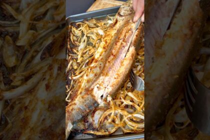 ماهی درسته در فر به سادهترین روش! پیاز خلالی + روغن زیتون + ادویه → توی فر و آماده در کمترین زمان. آخرشم با لیموی …