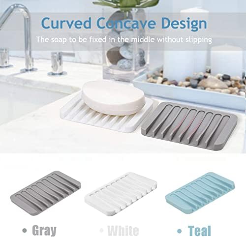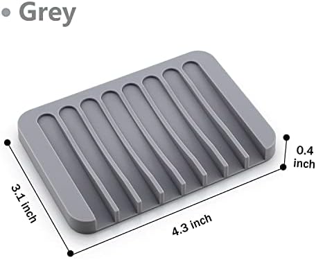 Self Draining Soap Dishes, 3 Pcs Silicone Soap Saver, Waterfall Drainer Soap Holder for Bathroom, Extend Soap Life, Keep Soap Bars Dry Clean & Easy Cleaning (Gray)