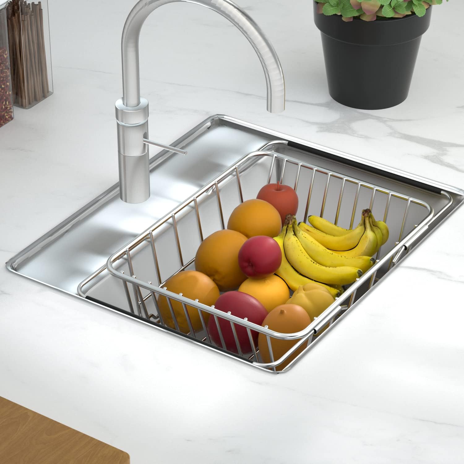 You can store vegetables,tomatoes,potatoes or fruits, place in the over sink,expandable.