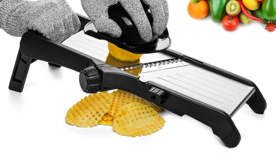 VEKAYA Adjustable Mandoline Slicer, Mandoline Slicer for Kitchen, Mandolin with Cut-Resistant Gloves,Potato Slicer, Vegetable Slicer, Mandoline French Fry Cutter, Stainless Steel Vegetable Chopper