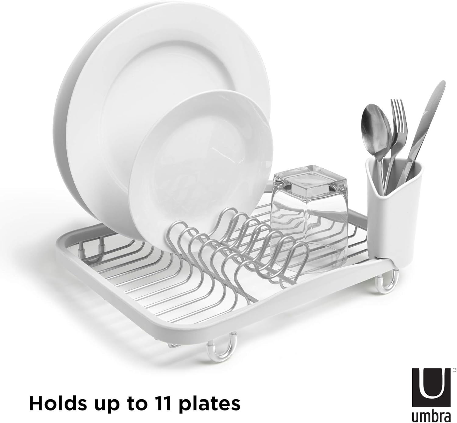Sometimes kitchens have limited storage or minimal storage for drying dishes. Alleviate this common kitchen issue with this thoughtfully designed drying rack from Umbra.