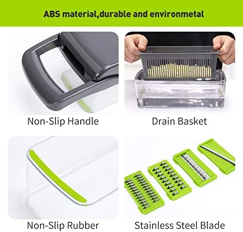 Rust-Resistant Cooking Gadgets – Rust resistant heavy-duty 420 stainless steel retains razor sharpness for crisp, smooth cutting and grating. Blades snap in and out with ease. Cut potatoes, tomatoes, cucumbers, carrots and more. Vegetable Chopper, Onion Chopper, Onion Chopper Professional food Choppermultifunctional Vegetable Chopper and Slicer, Dicing Machine, AdjustableVegetable Cutter With Container