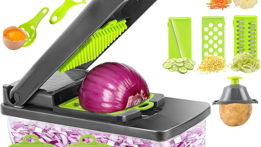 SUPERIOR QUALITY: The Vegetable chopper is made of high-quality stainless steel, ensuring durability and no rust. Veggie chopper is sharp and hardened stainless steel blades can effectively cut, dice and slice a variety of fruits and vegetables, whether it is onions or hard carrots, the food chopper‌ can easily handle it, reducing the mess when cutting and providing you with a good kitchen experience.