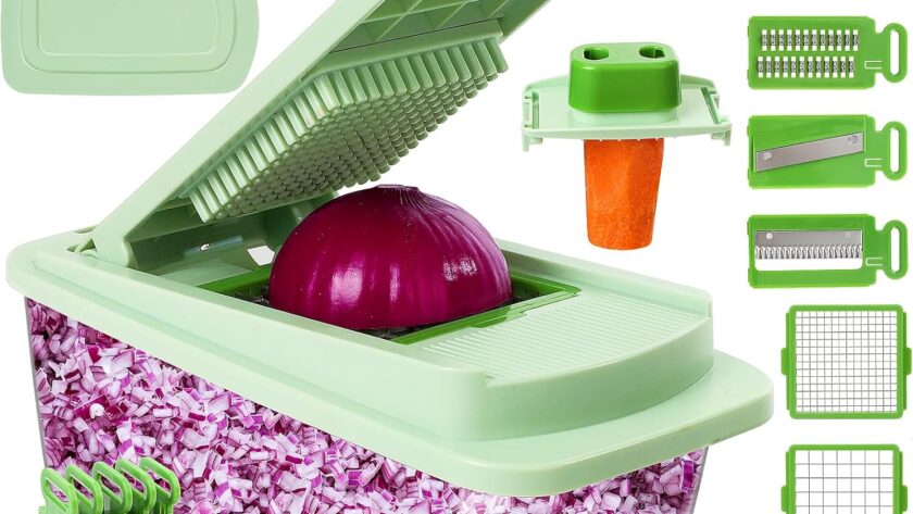 Vegetable Chopper with 8 Blades – Onion Chopper 16-in-1 with Container, Kitchen Vegetable Spiralizer Kitchen Gadgets – Home Essentials – Accessories