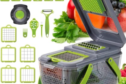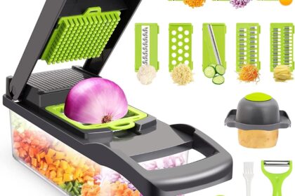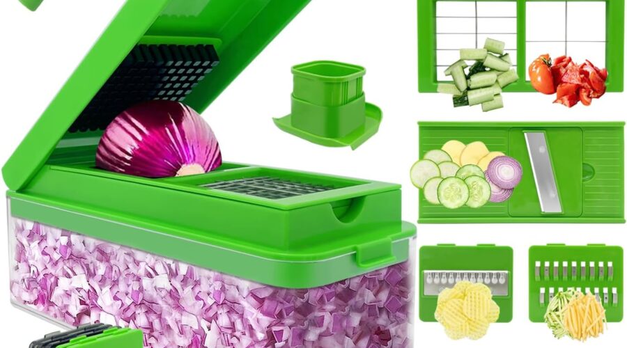 Vegetable Chopper Slicer Onion Dicer, Multifunctional 14 in 1 Food Chopper, Onion Chopper with Container, Mandoline Slicer,Salad,Garlic Chopper (10 Blades, Green)