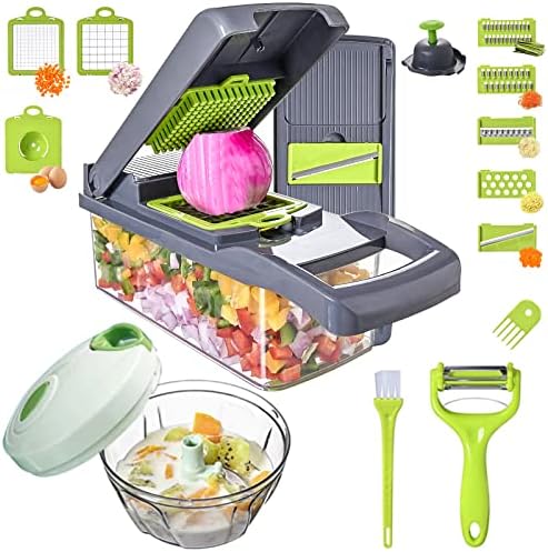 Vegetable Chopper Slicer 16-in-1 with Spice Chopper Set 7 Blades Veggie Dicer Onion Fruit Cutter (gray set)
