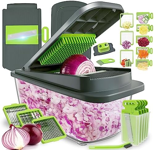 Kitexpert Vegetable Chopper, Onion Chopper Dicer Veggie Chopper with 8 Blades and Container with Lid, 13-in-1 Spiralizer Chopper Vegetable Cutter, Kitchen Vegetable Slicer Dicer Cutter Food Chopper