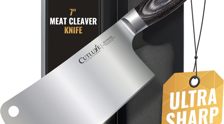 Cutluxe Meat Cleaver Knife – Ultra Sharp 7″ Meat Cleaver, Butcher Knife, High Carbon Stainless Steel Blade, Full Tang Pakkawood Handle – Shinobi Series