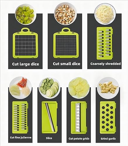 8 Interchangeable Blades: Vegetable Chopper Slicer includes 8 different sizes of interchangeable fruit chopper blades for thick or thin slicing, dicing or shredding,shredding or chopping, grinding and mincing. The onion chopper’s rust-resistant, heavy-duty stainless steel maintains sharp edges for crisp, smooth cuts and grinds. The blades go in and out easily and are built to last, making it the perfect tool for making home cooking easier and faster.
