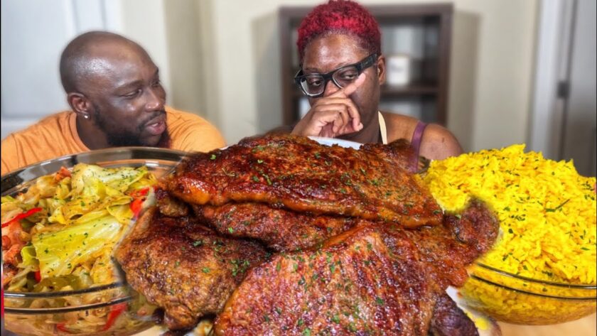 WE PRAYING FOR YOU.. @EatwithQue | STEAKS & GRAVY| YELLOW RICE| CABBAGE| MUKBANG EATING SHOW!