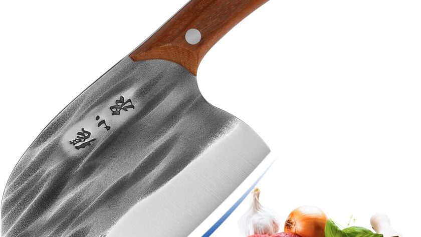 【High Carbon Clad Steel Cleaver】Our knife is forged of high carbon steel with high quality, high hardness and wear resistance. Hand polished edge at per side has an extraordinary performance & a longer service life, helps you cut smoothly with ease. It can easily slice, dice and mince. Hammered texture on the blade not only makes it chic and unique, but makes it anti-sticking. Proper care is required to prevent corrosion, but with regular maintenance, these forged knives will maintain their sharpness